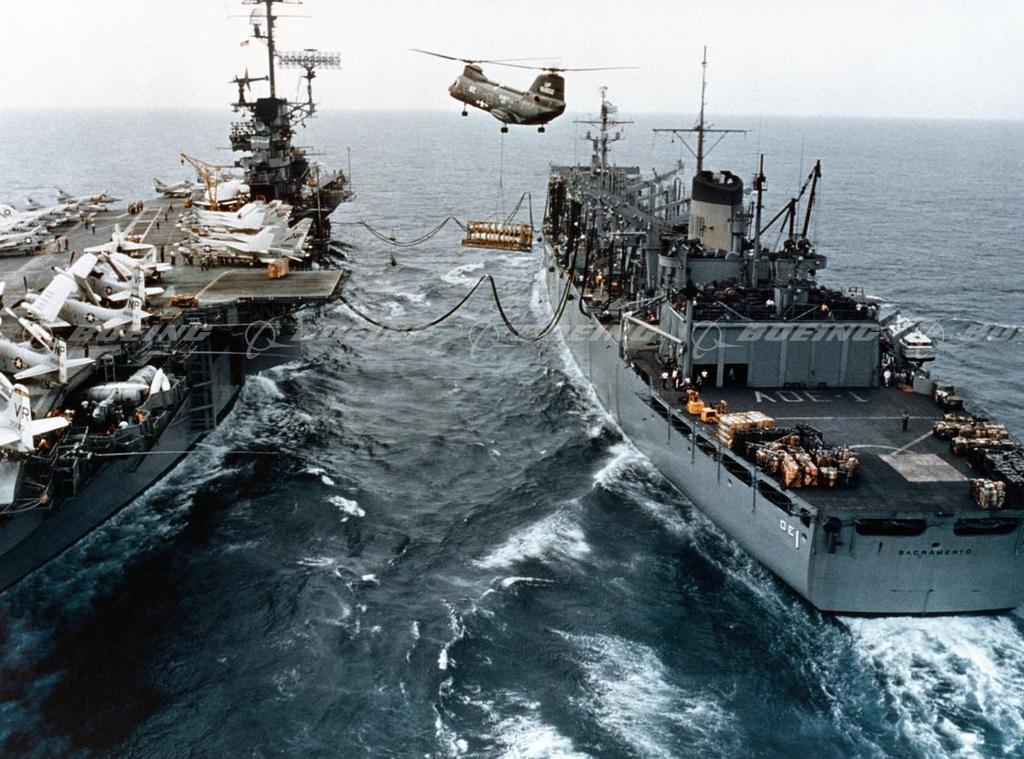 US Navy CH-46A Sea Knight Helicopter Transferring Supplies