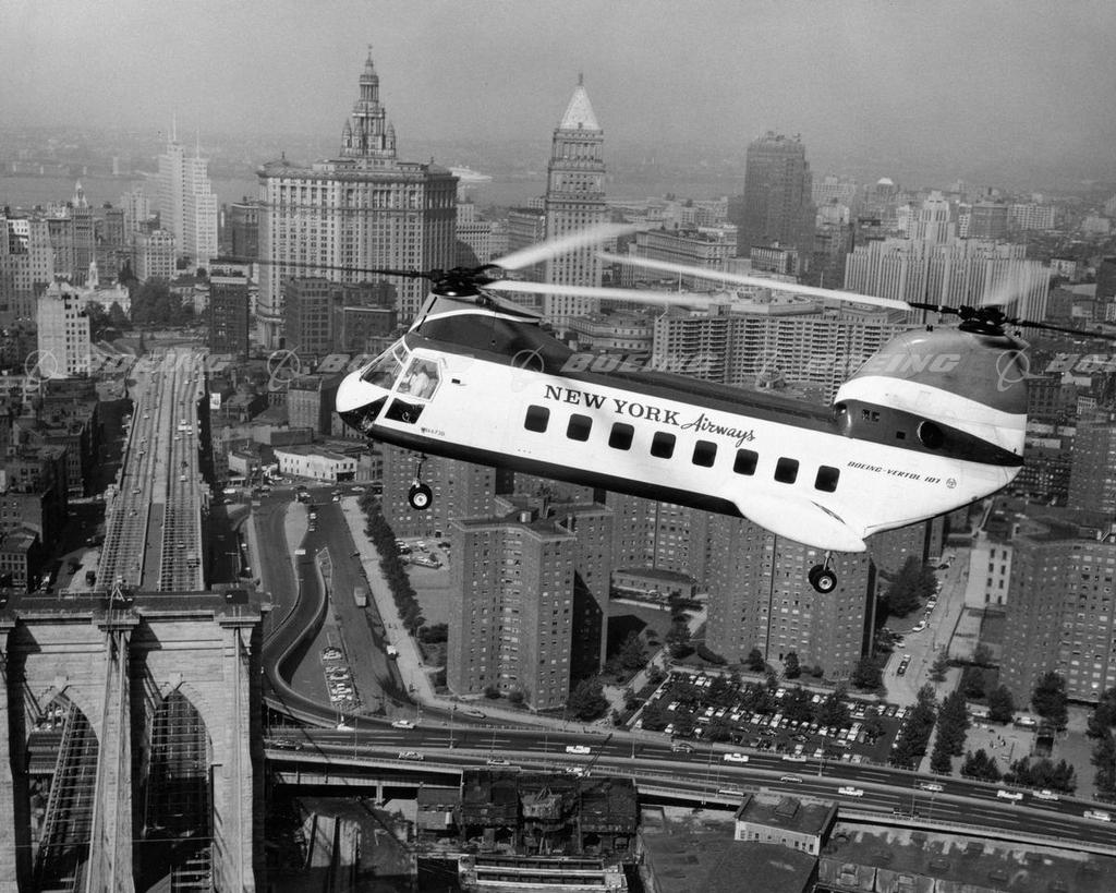 Boeing Vertol 107 Flying Over Lower Manhattan