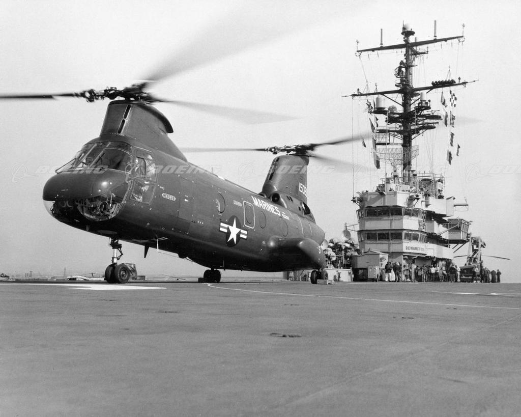CH-46A Sea Knight Landing on Aircraft Carrier