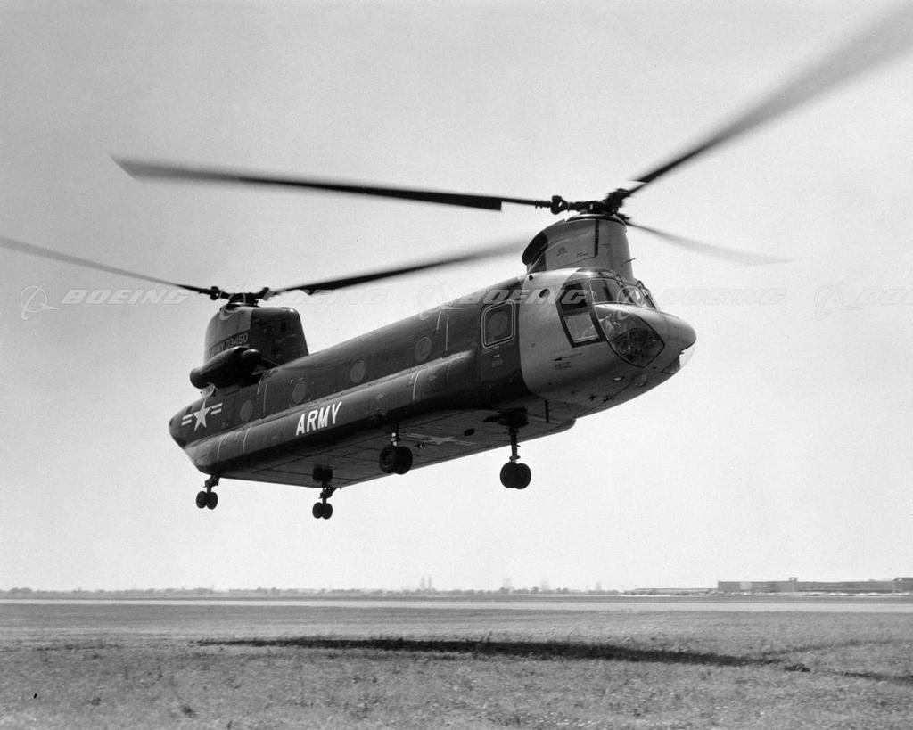 CH-47A Chinook Helicopter in Flight over Tail of 727