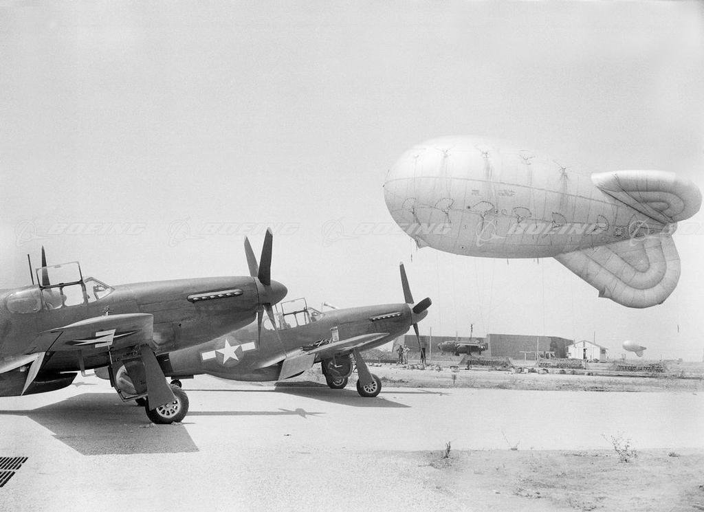 P-51A and P-51B Mustangs on Tarmac with Ice Cream Truck