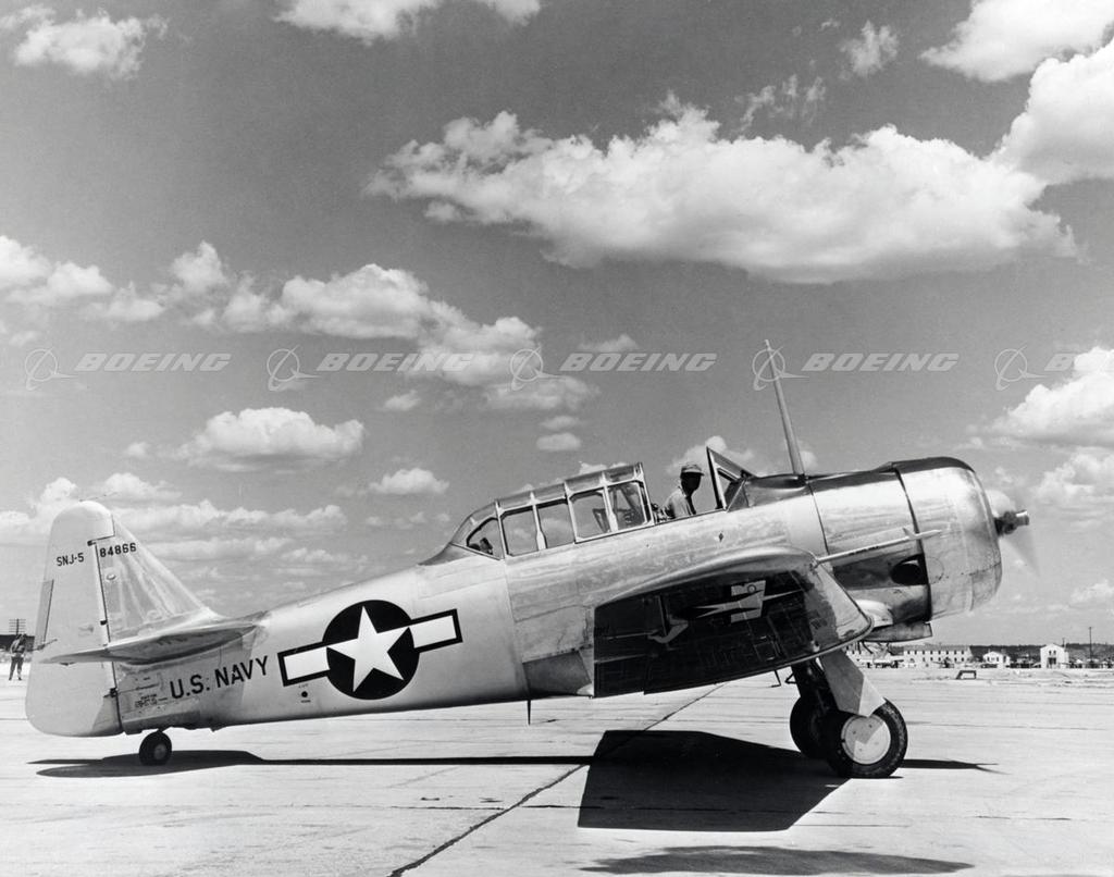 The North American T-6 Texan two-place advanced trainer was the classroom for most of the Allied pilots who flew in World War II. Called the SNJ by the Navy and the Harvard by the British Royal Air Force, the AT-6 (advanced trainer) was designed as a transition trainer between basic trainers and first-line tactical aircraft. It was redesignated T-6 in 1948. In all, the T-6 trained several hundred thousand pilots in 34 different countries over a period of 25 years.
