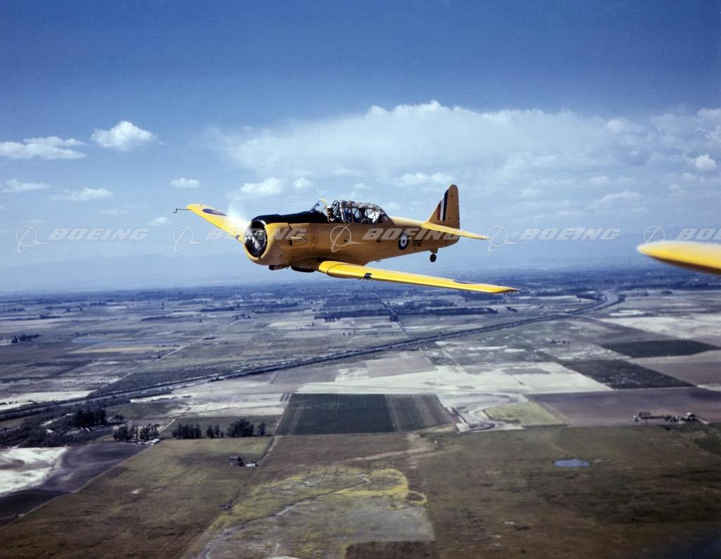 The North American T-6 Texan two-place advanced trainer was the classroom for most of the Allied pilots who flew in World War II. Called the SNJ by the Navy and the Harvard by the British Royal Air Force, the AT-6 (advanced trainer) was designed as a transition trainer between basic trainers and first-line tactical aircraft. It was redesignated T-6 in 1948. In all, the T-6 trained several hundred thousand pilots in 34 different countries over a period of 25 years.