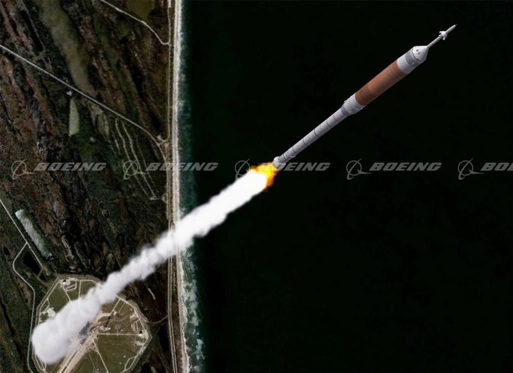 The Ares I crew launch vehicle is shown shortly after launch from Kennedy Space Center, Fla., in an artists rendering. The 309-foot long, two-stage Ares I rocket is capable of launching approximately 25 metric tons into low earth orbit. The Ares I rocket is slated for its first flight in 2009.