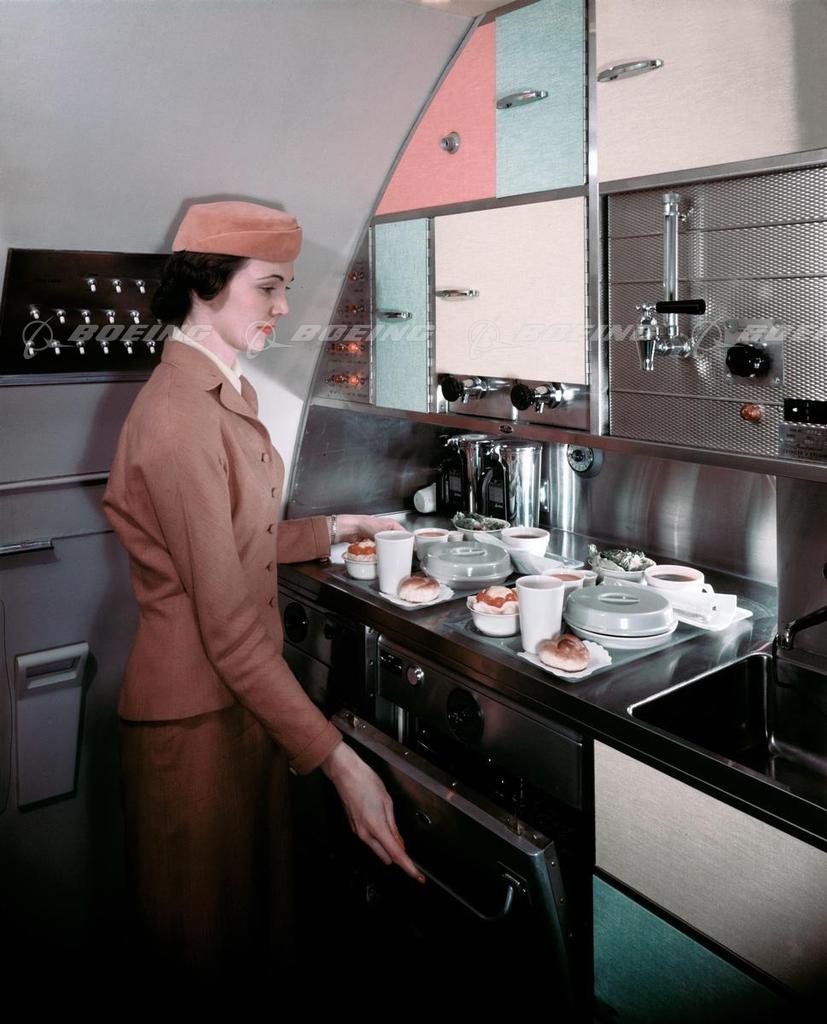 The 707's width and the 100-foot length made it the largest passenger cabin in the air in the late 1950s. Placement of its more than 100 windows allowed airlines to rearrange seats. Location of passenger doors on the left side, at the front and at the rear of the cabin, became standard for subsequent Boeing jets. The exteriors of the 707 and its competitor, the DC-8, were almost identical, but the 707 wing had more sweepback, so it could fly about 20 mph faster.