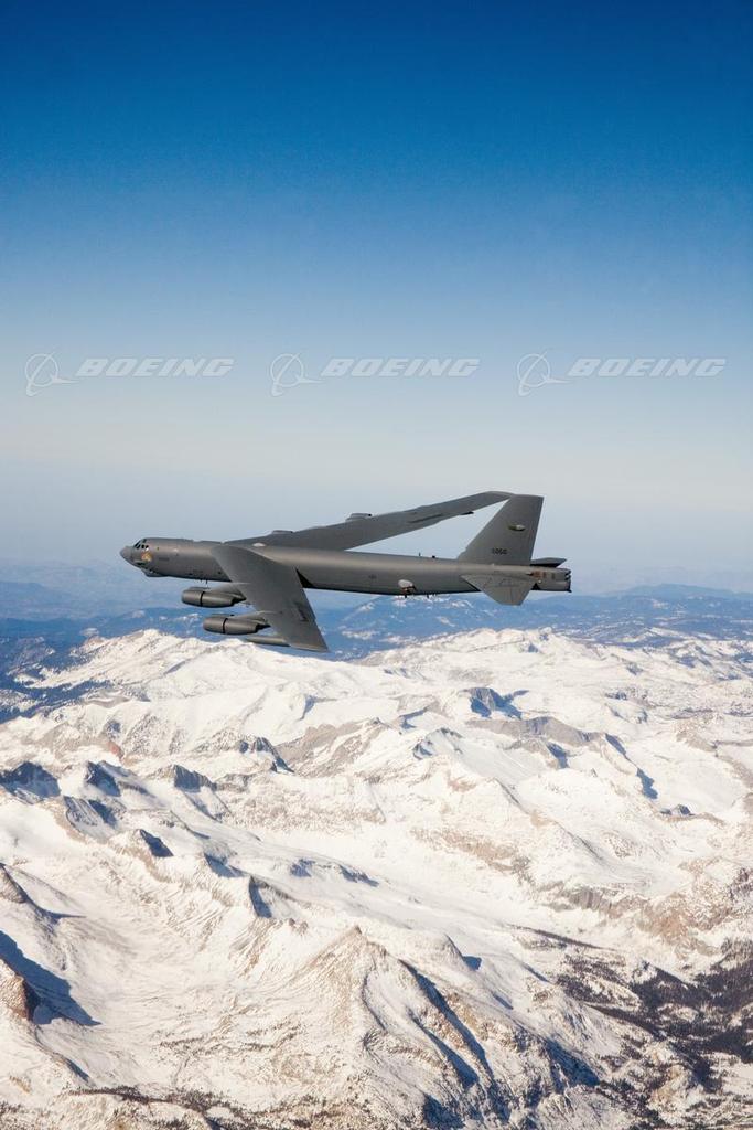 B-52H Stratofortress in Flight Over Snowy Mountains