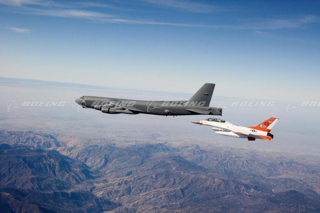 B-52H Stratofortress in Flight with F-16 Chase Plane
