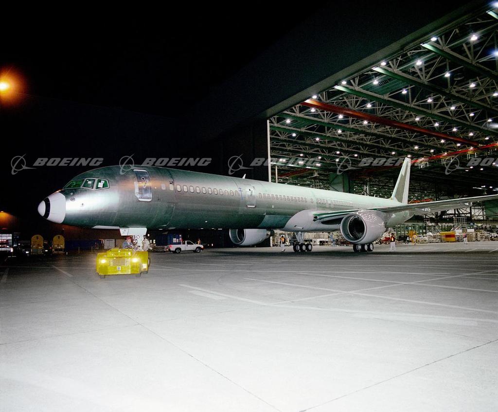 757-300 Rolls Out of the Factory Towards the Paint Hangar