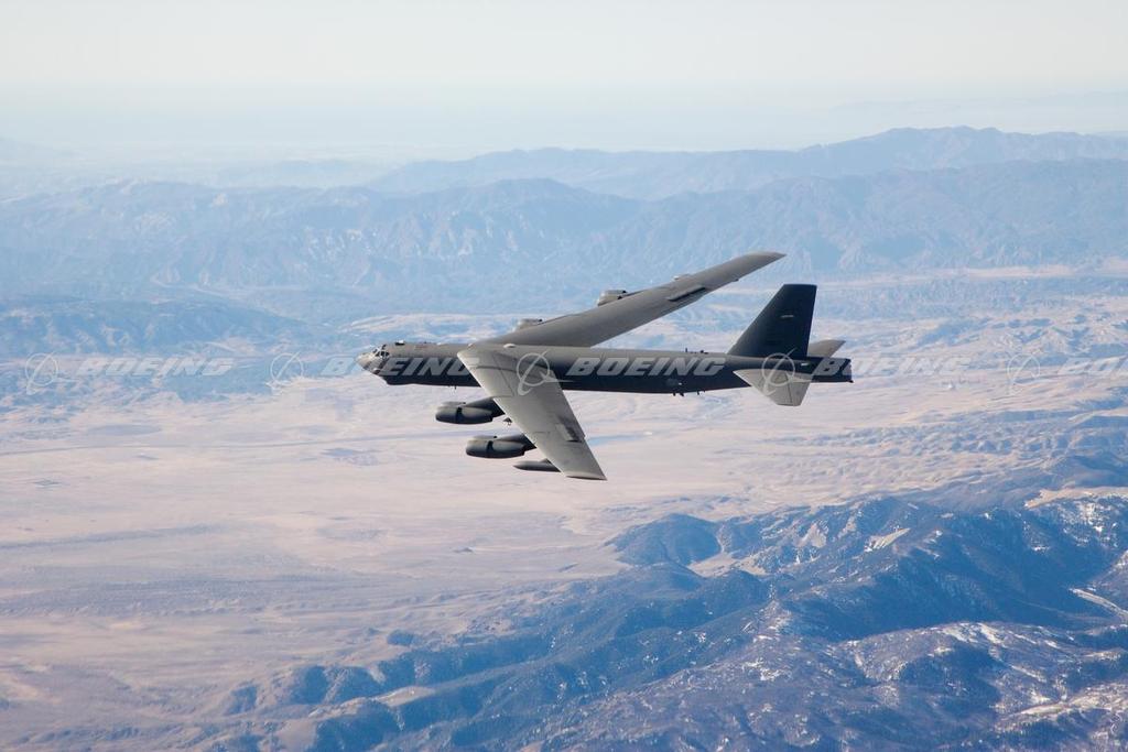 B-52H Stratofortress in Flight Over Snowy Mountains