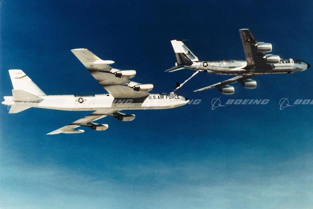 Dash 80 and B-52 Fly Over KC-135 Rollout, with KC-97 in Background