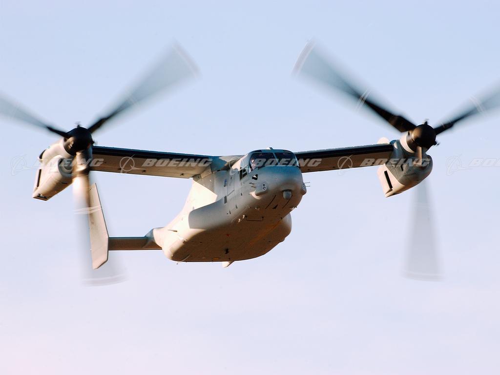 The V-22 Osprey tiltrotor aircraft takes off and lands like a helicopter. Once airborne, its engine nacelles can be rotated to convert the aircraft to a turboprop airplane capable of high-speed, high-altitude flight.