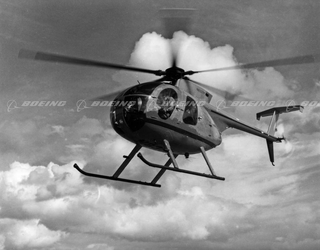 Hughes Model 500D helicopter, with its stylish T-tail.