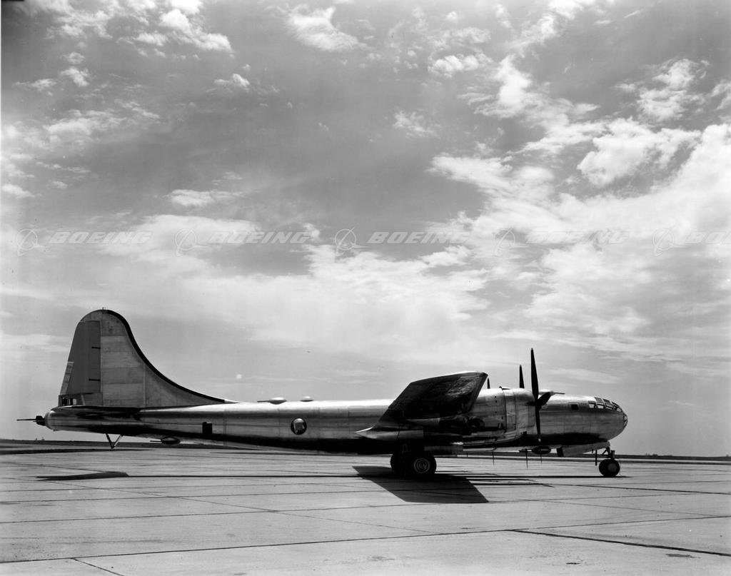 The new Boeing B-29 Superfortress entered combat less than two years after its first flight in 1942. It was the largest bomber to go into production during the war and had the longest range. In February 1942, the Army Air Forces ordered the B-29 built at factories around the country, including Bell Aircraft Co. at Marietta, Ga., North American Aviation at its Kansas City, Kan., plant, and the Glenn Martin Co. in Omaha, Neb. This ordering of a pre-production airplane industrywide was unprecedented in aviation history.