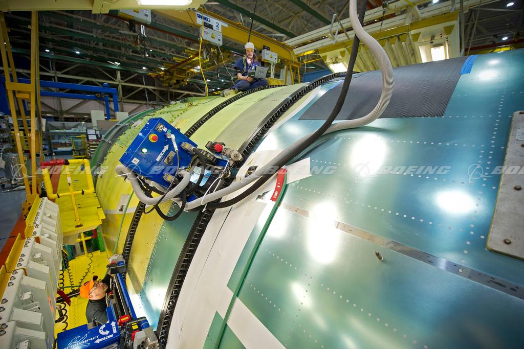 Attaching 777 Fuselage Skin to Airframe