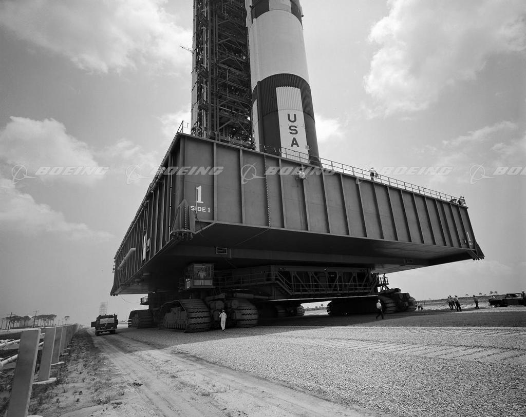 Saturn V Rocket on Giant Crawling Gantry at Cape Kennedy