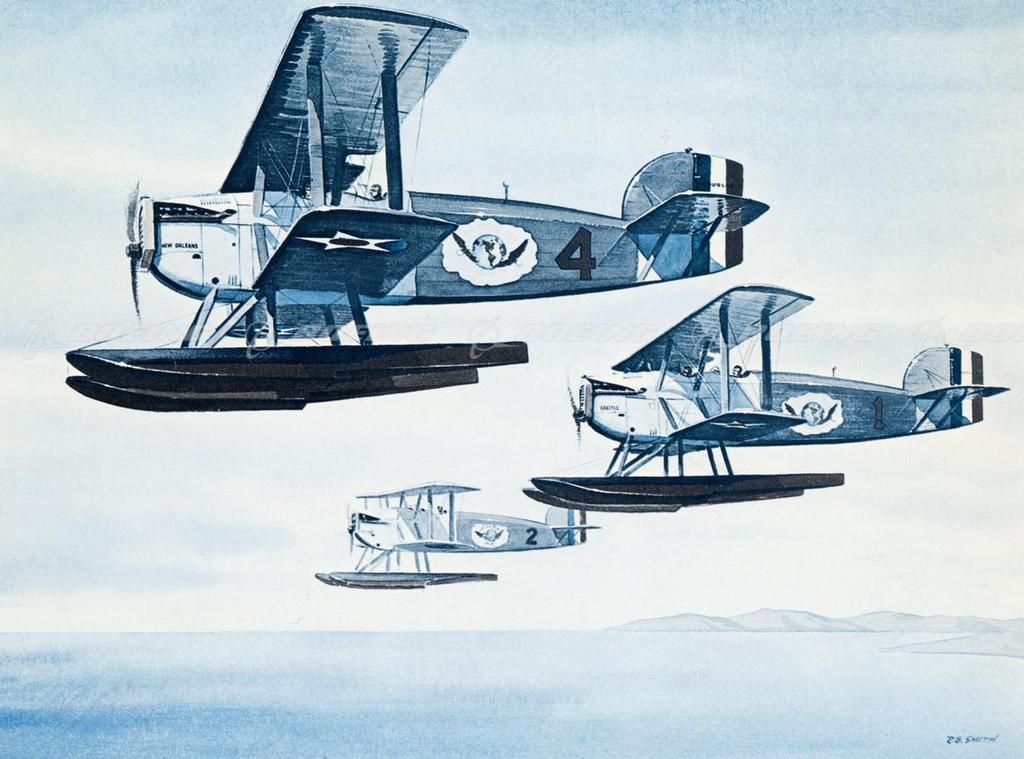 The Douglas World Cruiser was one of the most famous of the early Douglas airplanes. Ordered by the U.S. Army Air Service in 1923, five Douglas World Cruisers were built for the sole purpose of attempting the first circumnavigation of the globe by air. On April 6, 1924 four Douglas World Cruisers took off from Sand Point on Lake Washington on the first leg of their long flight. On Sept. 28, they returned to Seattle. They had logged 27,553 miles in six months and six days, with an actual flying time of 371 hours. They had touched down in 28 countries and had crossed the Atlantic and Pacific Oceans. The flight was the greatest feat in aviation up to that time and earned the Douglas Aircraft Co. its motto, "First Around the World."