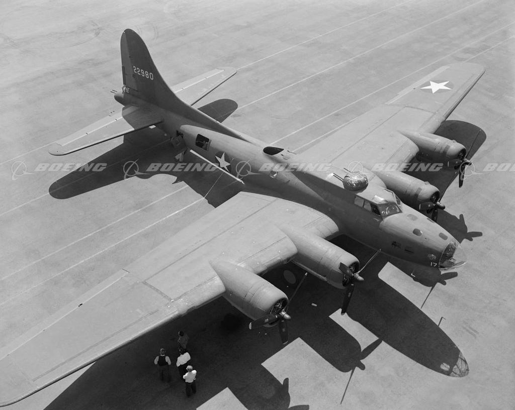 As the storm of World War II shook the world, Boeing-designed B-17 bombers darkened European skies, dropping 640,036 bombs on designated targets. Described by General H. H. Hap Arnold, as the backbone of our worldwide aerial offensive, the B-17 Flying Fortress served in every World War II combat zone. Boeing, Douglas, and Lockheed Vega produced 12,731 B-17s at plants across the country, and the four-engine bombers became legendary for their ability to stay in the air after taking brutal poundings.