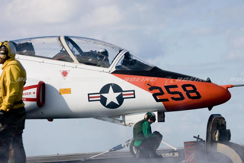 The T-45 Goshawk is the center of the T-45 training system, which was designed for undergraduate jet aircraft training. The Goshawk is a heavily modified naval variant of the Hawk, a land-suitable trainer produced by U.K.-based BAE Systems. Boeing delivered the 221st and final T-45 training jet to the U.S. Navy in November 2009.