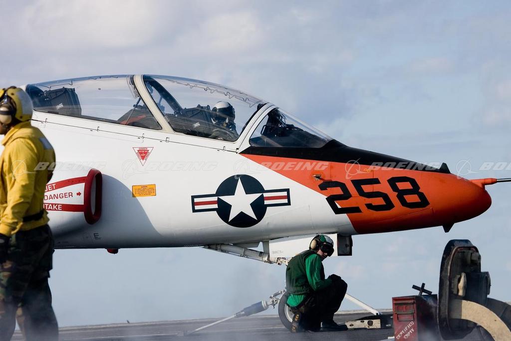 The T-45 Goshawk is the center of the T-45 training system, which was designed for undergraduate jet aircraft training. The Goshawk is a heavily modified naval variant of the Hawk, a land-suitable trainer produced by U.K.-based BAE Systems. Boeing delivered the 221st and final T-45 training jet to the U.S. Navy in November 2009.