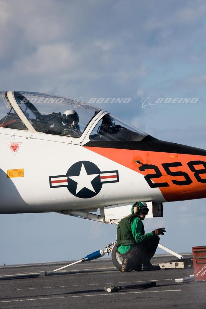 The T-45 Goshawk is the center of the T-45 training system, which was designed for undergraduate jet aircraft training. The Goshawk is a heavily modified naval variant of the Hawk, a land-suitable trainer produced by U.K.-based BAE Systems. Boeing delivered the 221st and final T-45 training jet to the U.S. Navy in November 2009.