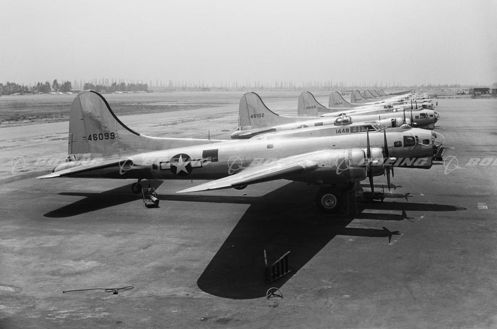 B-17G Flying Fortresses on the Flight Line at Boeing Field