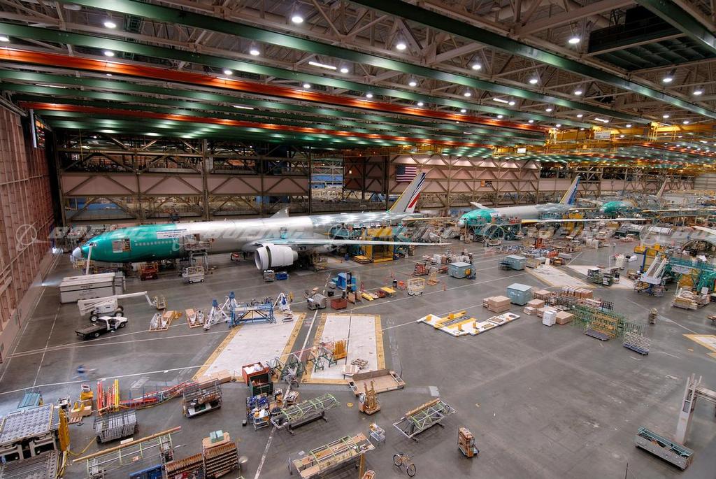 On Nov. 8, 2006 The Boeing Company began using a moving assembly line for the first time to build its market-leading 777 jetliner. To make its 777 assembly line move during final assembly, Boeing uses a tug that attaches around the front landing gear of the airplane and pulls it forward. The tug has an optical sensor that follows a white line along the floor. During final assembly, mechanics install items such as seats, overhead stow bins and other items on the interior of the airplane. In addition, functional testing is performed on the various systems in the airplane and the engines are attached.