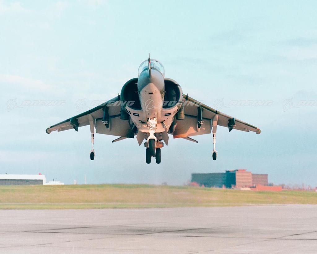 In 1969 McDonnell Douglas teamed up with British Aerospace and Rolls -Royce to develop an advanced-technology upgrade of the original Harrier “jump jet.” The AV-8B’s first flight took place in St. Louis on November 9, 1978. The U.S. Marine Corps, Britain’s Royal Air Force and the navies of Spain and Italy fly the aircraft. Designed to provide fast and effective close air support to ground forces, the AV-8B can operate from field clearings, roads, bomb-damaged runways, and small ships. Variants include a two-seat trainer version, the TAV-8B and a night attack version, with a forward-looking-infrared sensor mounted above its nose. A total of 377 AV-8Bs were built in St. Louis and delivered between 1978 and 1995. The newest version of the Harrier is the AV-8B II Plus, which made its first flight on September 22, 1992. Equipped with the same radar used on the F/A-18C Hornet, the Harrier II Plus can perform air-to-air, anti-ship and close-air-support missions around the clock and in bad weather. A Boeing, British Aerospace and Rolls-Royce team produces the plane, which was developed through a three-nation agreement between the U.S., Spain and Italy. Through a remanufacturing program, earlier versions of the AV-8B are converted into the Harrier II Plus at a much lower cost than an all-new aircraft. The U.S. Marine Corps received its first Harrier II Plus in 1993 and its first remanufactured aircraft in 1996. Final assembly of the Harrier II Plus is done at the Boeing plant in St. Louis.