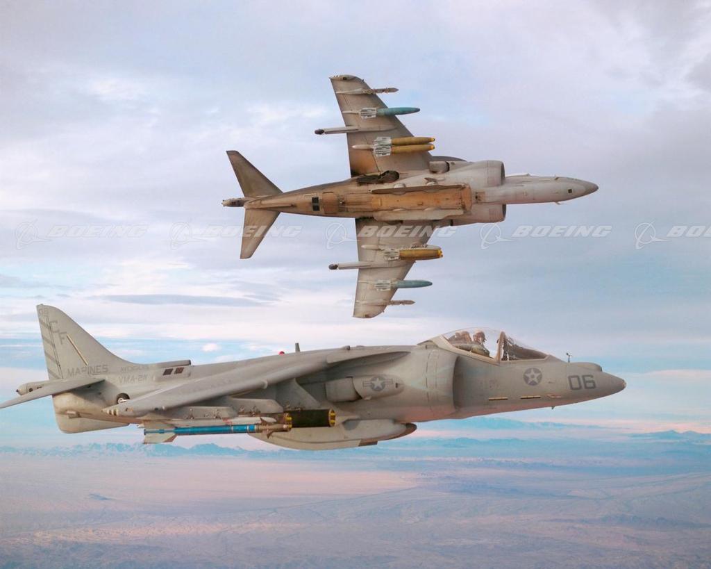 The eye-catching trademark of the AV-8B Harrier II - its ability to takeoff and land vertically - makes it one of the world’s most recognizable aircraft. In 1969 McDonnell Douglas teamed up with British Aerospace and Rolls -Royce to develop an advanced-technology upgrade of the original Harrier “jump jet.” The AV-8B’s first flight took place in St. Louis on November 9, 1978. The U.S. Marine Corps, Britain’s Royal Air Force and the navies of Spain and Italy fly the aircraft. Designed to provide fast and effective close air support to ground forces, the AV-8B can operate from field clearings, roads, bomb-damaged runways, and small ships. A two-seat trainer version, the TAV-8B, first flew in 1986. The night attack version of the AV-8B, with a forward-looking-infrared sensor mounted above its nose, made its first flight in 1987. A total of 377 AV-8Bs were built in St. Louis and delivered between 1978 and 1995. The newest version of the Harrier is the AV-8B II Plus, which made its first flight on September 22, 1992. Equipped with the same radar used on the F/A-18C Hornet, the Harrier II Plus can perform air-to-air, anti-ship and close-air-support missions around the clock and in bad weather. A Boeing, British Aerospace and Rolls-Royce team produces the plane, which was developed through a three-nation agreement between the U.S., Spain and Italy. Through a remanufacturing program, earlier versions of the AV-8B are converted into the Harrier II Plus at a much lower cost than an all-new aircraft. The U.S. Marine Corps received its first Harrier II Plus in 1993 and its first remanufactured aircraft in 1996. Final assembly of the Harrier II Plus is done at the Boeing plant in St. Louis.