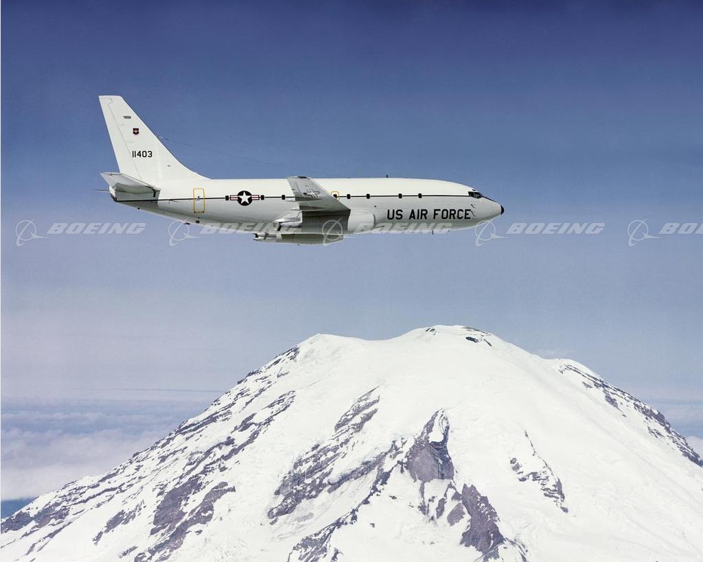 T-43 Cargo Trainer (737-200) in Flight over Mt. Rainier(tail 11403). The Department of the Air Force trains navigators for all Department of Defense elements. The Aerial Navigation Training School at Randolph Air Force Base, Texas, provides both basic navigation and advanced systems training utilizing an academic combination of flight and ground simulator training. Flight training academics are accomplished using specially modified Boeing 737-200 aircraft -- designated the T-43 by the U.S. Air Force. For the past 24 years, flying training curriculum has been based on the Boeing 737-200 military derivative. The T-43 provides an over-the-shoulder flying classroom and a real-time flight training environment using the same on-board navigation systems that are utilized by navigators in the most advanced operational aircraft. These systems include celestial, inertial radar and radio navigation systems. The T-43 on-board systems are used to train navigators for operational flying organizations and to orient Air Force Academy cadets to the operational flight environment. The T-43 aircraft used for U.S. Southern Command special airlift missions have been specially modified for that unique mission.