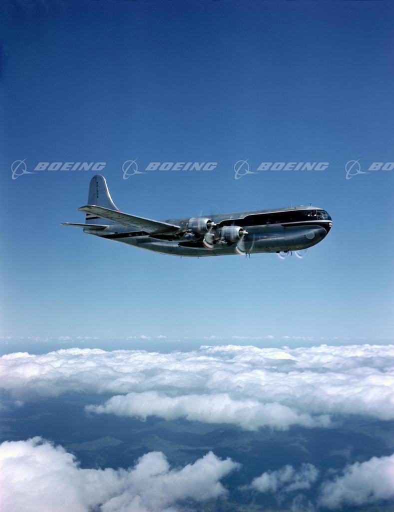 Boeing Model 377 Stratocruiser in Flight Above Clouds