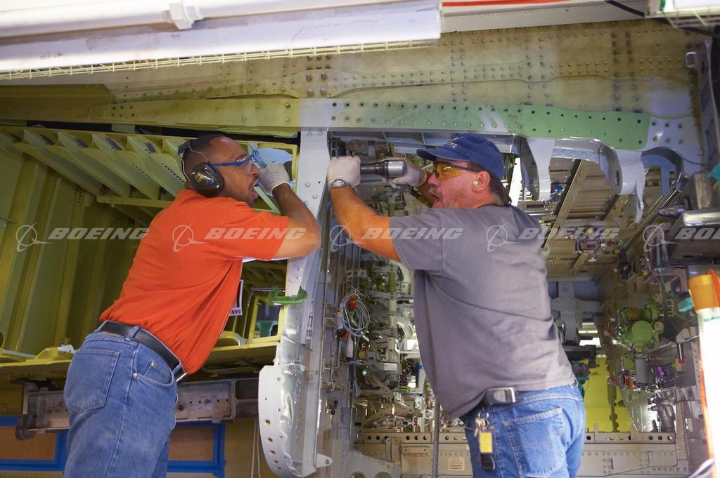Boeing Employees Working on the 737 Line in Renton, WA