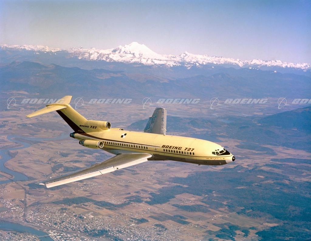 The first 727 rolled out Nov. 27, 1962, bearing the same lemon-yellow and copper-brown color scheme as the Dash 80. To help spur sales, Boeing sent a 727 on a 76,000-mile tour of 26 countries. Originally, Boeing planned to build 250 of the planes. However, after being shown to the world, they proved so popular (especially after the larger 727-200 model, which carried up to 189 passengers, was introduced) that a total of 1,832 were produced at the Renton plant. The 727 was the only Boeing-built trijet in its time. It was designed to operate out of small airports with shorter runways than were used by 707s. The 131-passenger trijet also was the first Boeing commercial jetliner to use an auxiliary power unit (APU), a small gas turbine that eliminated the need for ground power or starting equipment at small airports when the main engines were shut off. All 727s carried self-contained, hydraulically operated stairs, which, combined with the APU, could make the airplane independent of ground equipment. The 727 jet also was built as a freighter and as a ''quick change'' version, which airlines could convert from a passenger transport to a freighter, or a combination of both, as they chose.