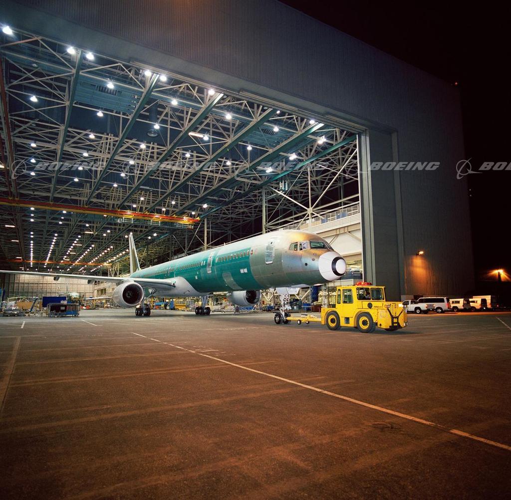 757-300 Rolls Out of the Factory Towards the Paint Hangar