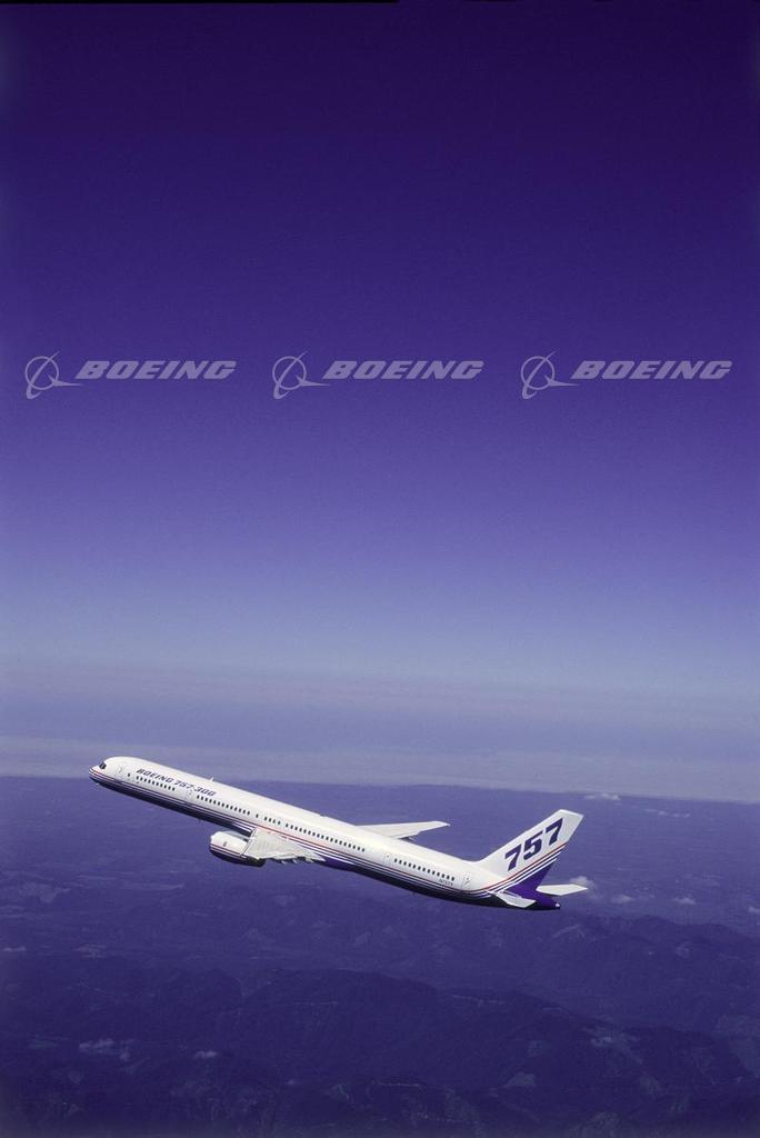 The Boeing 757-300, member of the popular 757/767 family of medium-sized airplanes. The 757-300 is a stretched version of the 757-200, measuring 23 feet 4 inches (7.1 meters) longer. The extra length allows it to carry 20 percent more passengers than the 757-200 and increases the available cargo volume by nearly 50 percent.