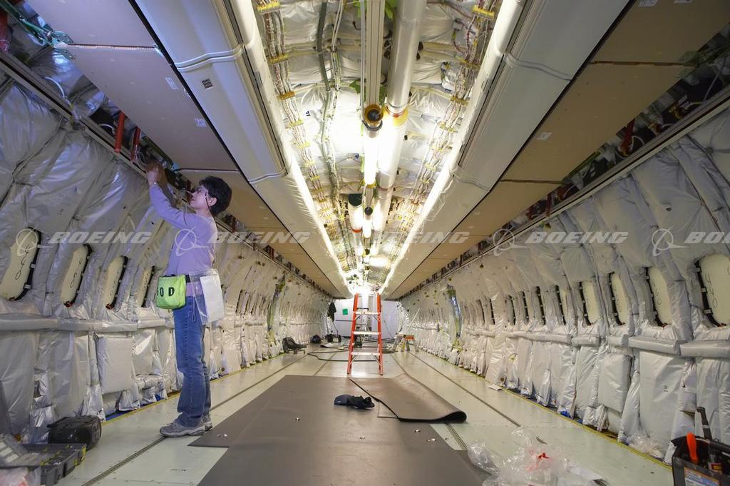 Factory Worker Inside a 737 Flight Deck in Assembly