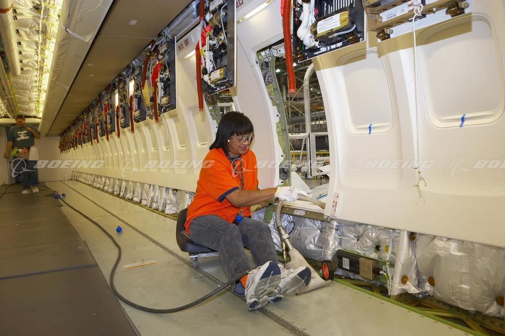 Factory Worker Inside a 737 Flight Deck in Assembly
