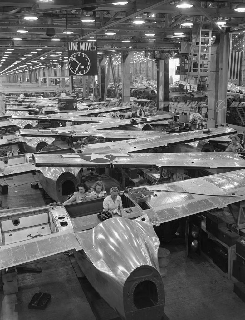 Douglas "Rosies" Wing Jig Crew Assemble a Boeing B-17 During WWII