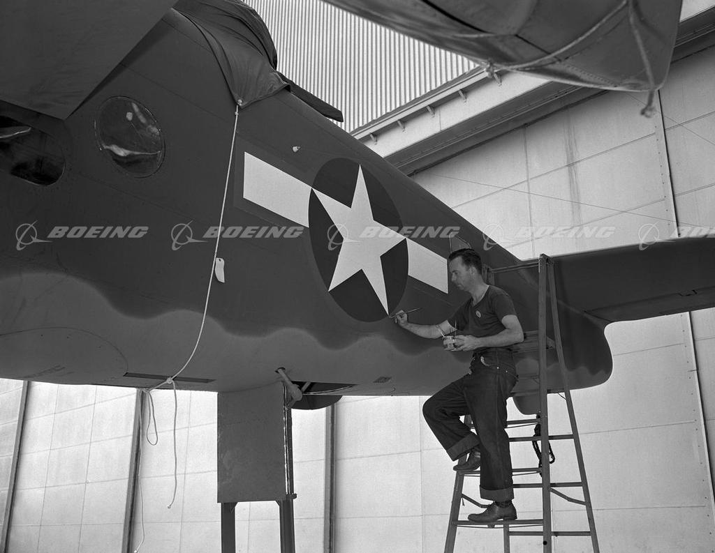 Workers Crating a B-25 Mitchell Wing for Shipping