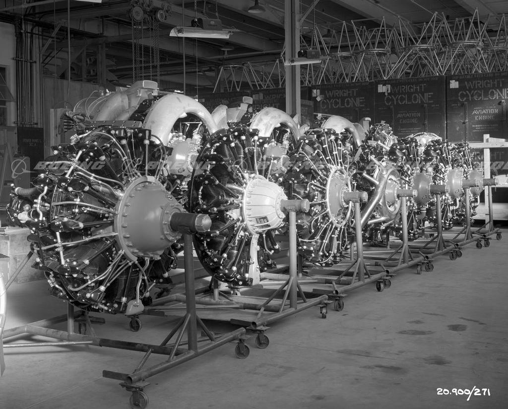 Transporting B-25 Mitchell Engines in the Factory
