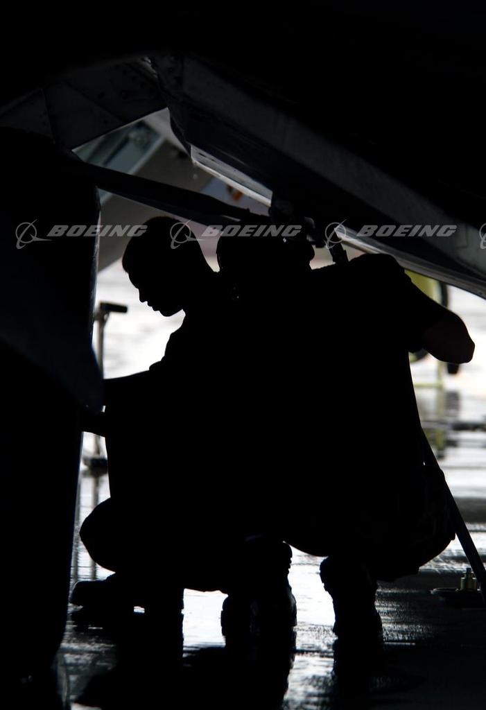 Silhouettes of Mechanics Servicing a C-17 Globemaster III