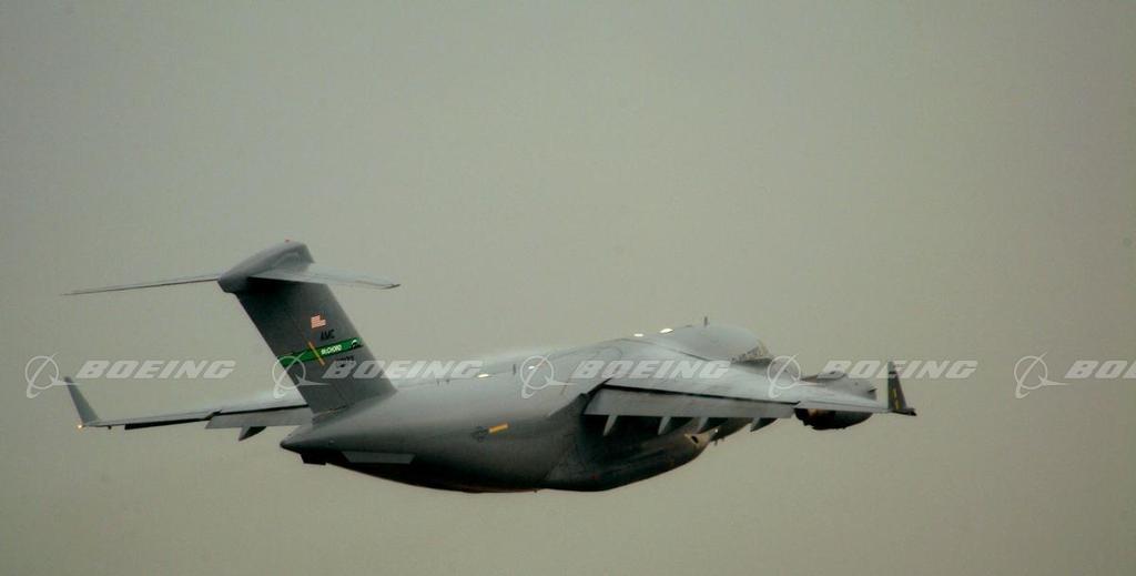 The C-17 Globemaster III is a high-wing, four-engine, T-tailed aircraft with a rear loading ramp. With its 160,000-pound payload, the C-17 can take off from a 7,600-foot airfield, fly 2,400 nautical miles and land on a small, austere airfield in 3,000 feet or less. On the ground, a fully loaded aircraft, using engine reversers, can back up a 2 percent slope. During normal testing, C-17s set 22 world records, including payload to altitude time-to-climb and the short takeoff and landing mark, in which the C-17 took off in less than 1,400 feet, carried a payload of 44,000 pounds to altitude and landed in less than 1,400 feet. Deployed in June 1993, it won the Collier Trophy in 1994, symbolizing the top aeronautical achievement of 1994.