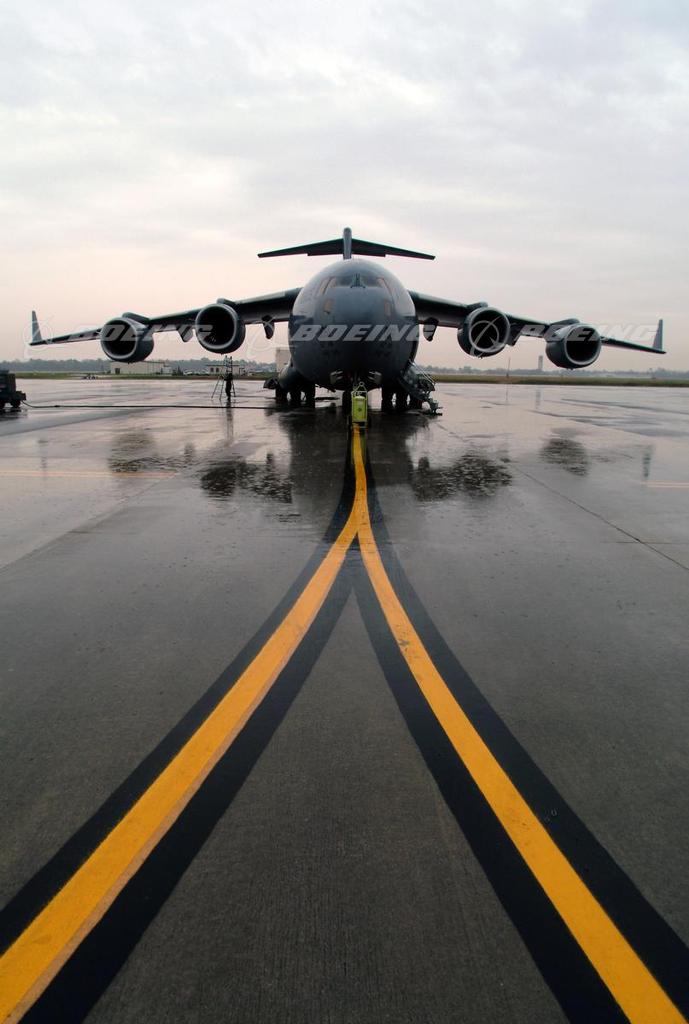 C-17 Globemaster III on Wet Tarmac