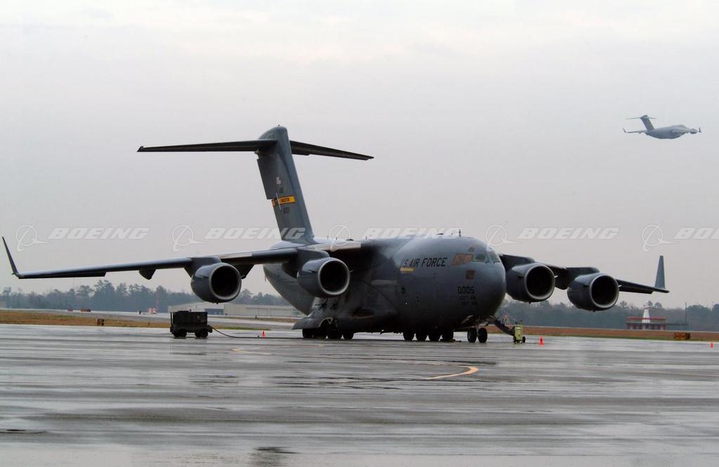 C-17 Globemaster III Landing on Wet Tarmac