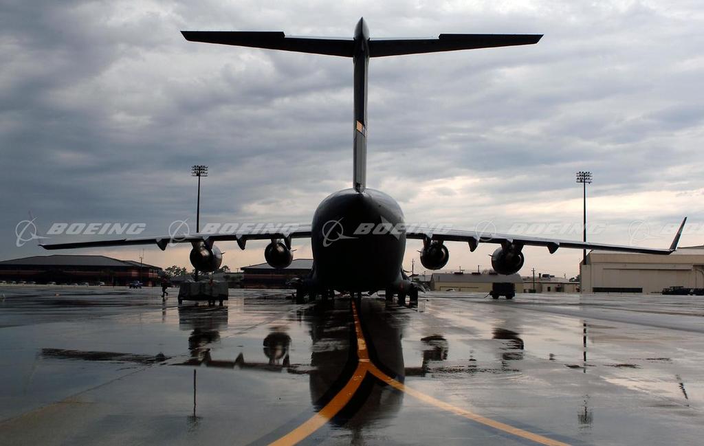 The C-17 Globemaster III is a high-wing, four-engine, T-tailed aircraft with a rear loading ramp. With its 160,000-pound payload, the C-17 can take off from a 7,600-foot airfield, fly 2,400 nautical miles and land on a small, austere airfield in 3,000 feet or less. On the ground, a fully loaded aircraft, using engine reversers, can back up a 2 percent slope. During normal testing, C-17s set 22 world records, including payload to altitude time-to-climb and the short takeoff and landing mark, in which the C-17 took off in less than 1,400 feet, carried a payload of 44,000 pounds to altitude and landed in less than 1,400 feet. Deployed in June 1993, it won the Collier Trophy in 1994, symbolizing the top aeronautical achievement of 1994.