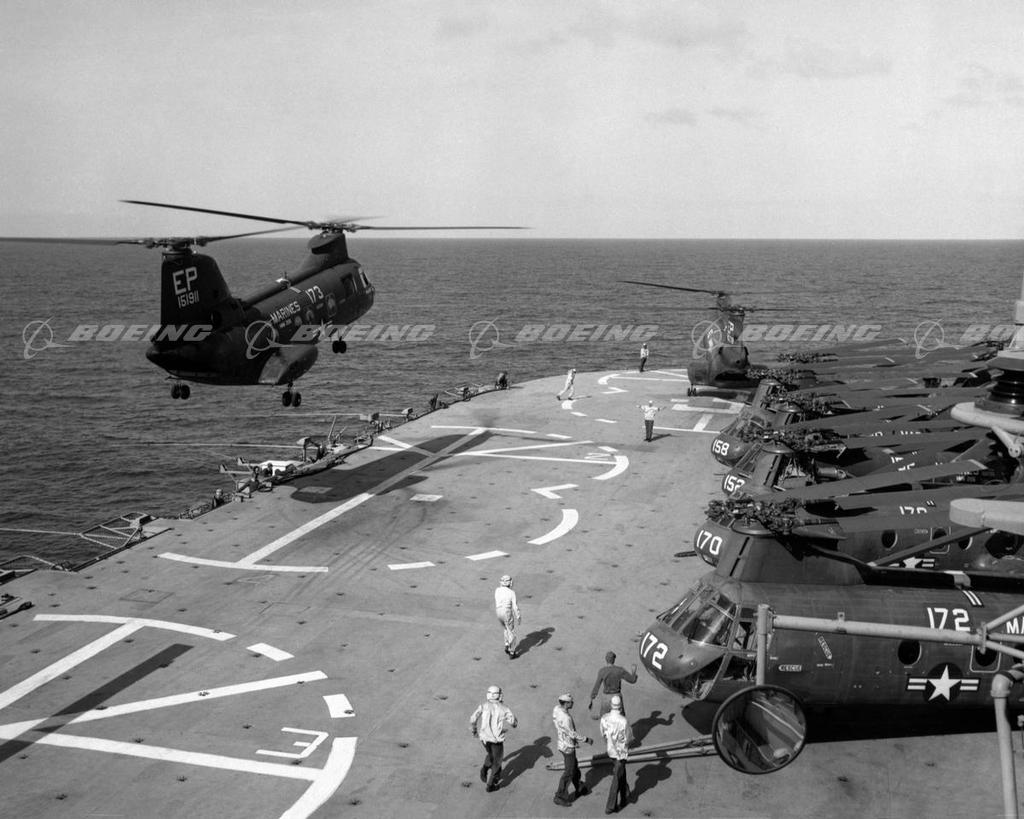 CH-46A Sea Knight Landing on Aircraft Carrier