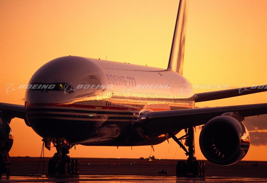 777-200 on Tarmac at Sunset