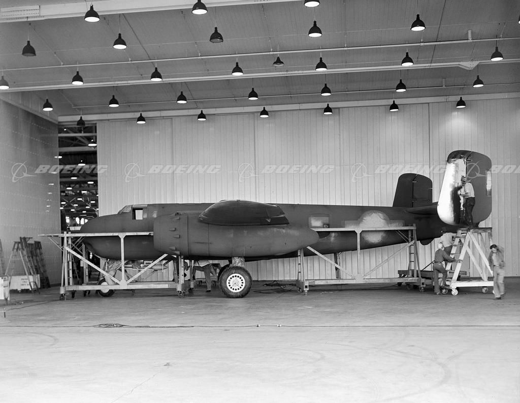The B-25 Mitchell was a twin-tail, mid-wing land monoplane powered by two 1,700-hp Wright Cyclone engines.
