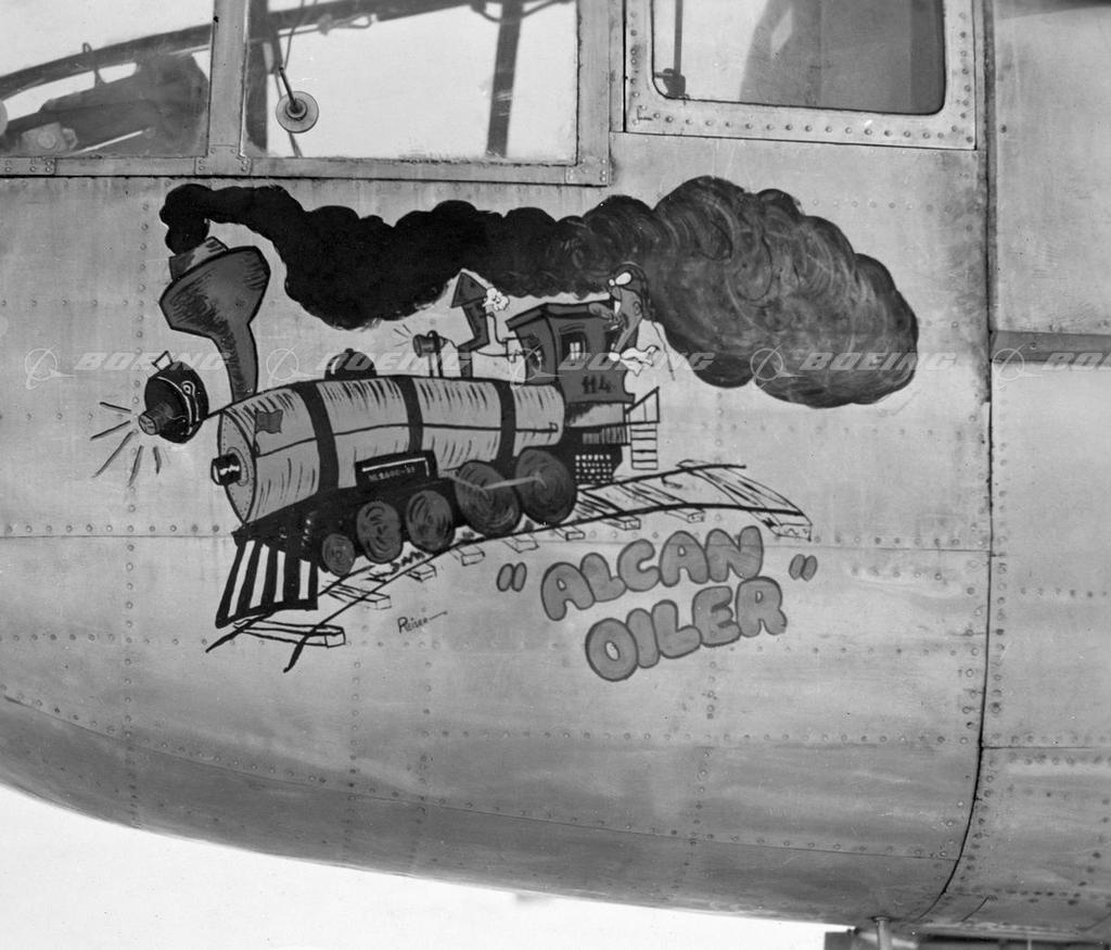 Ladies Gather Around a B-25 Mitchell with Thunderbird Nose Art