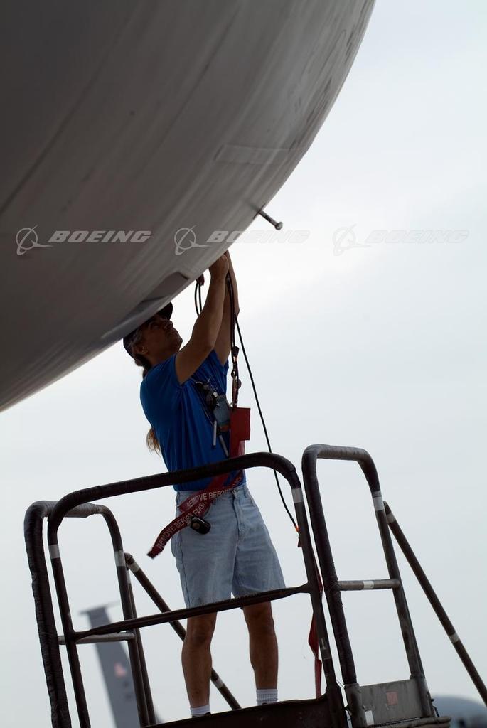Boeing Ground Crew Member Inspects a C-17 Globemaster III Fitting