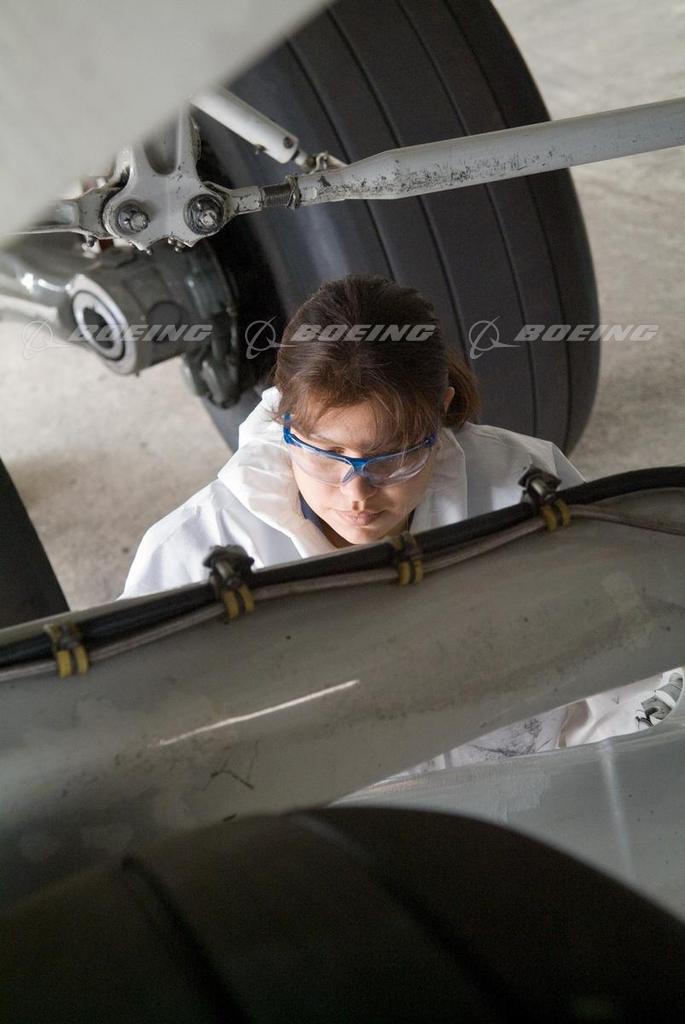 Boeing Ground Crew Member Inspects a C-17 Globemaster III Fitting